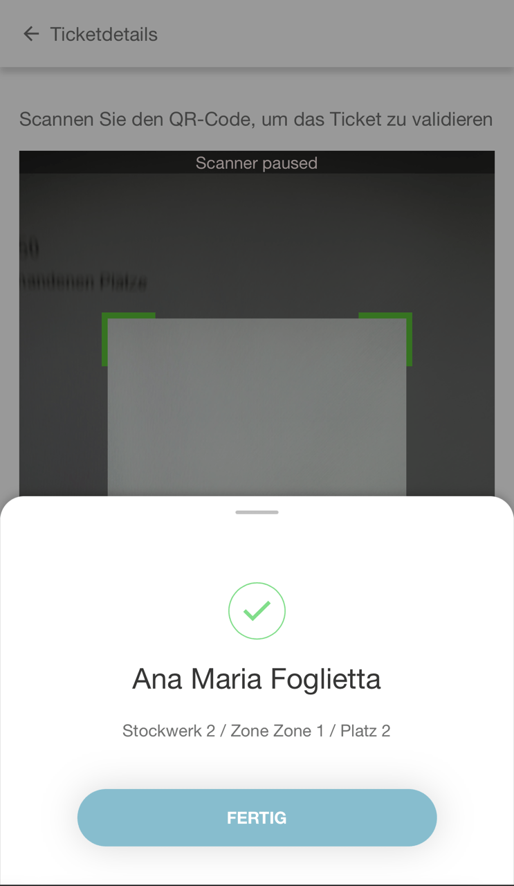 Der Veranstaltungsplaner kann diesen Vorgang wiederholen, bis alle Tickets erfolgreich validiert wurden.