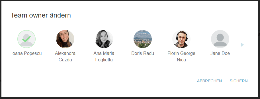 Um diese Aktion auszuführen, klicke einfach auf die Schaltfläche "Owner ändern" und wähle einen anderen aktiven Benutzer aus der Liste aus.