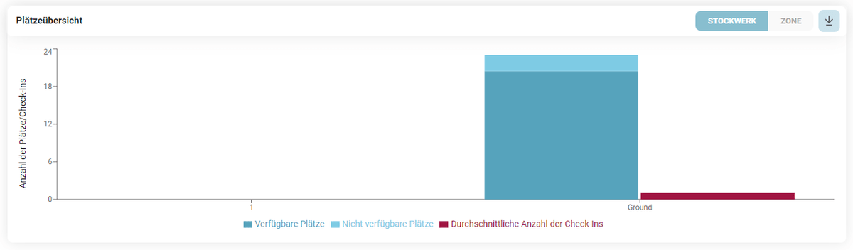 Eine Übersicht der aktivierten/deaktivierten und belegten Plätze einer bestimmten Etage oder Zone. Die Daten werden basierend auf den validierten Check-Ins angezeigt: