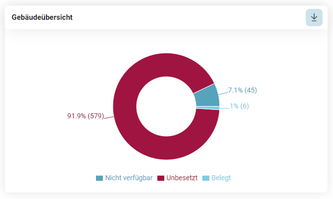 Eine Übersicht über aktivierte, deaktivierte und belegte validierte Plätze eines Gebäudes. Das Diagramm bezieht sich auf die Gesamtzahl der einzigartigen Plätze während des ausgewählten Zeitraums.