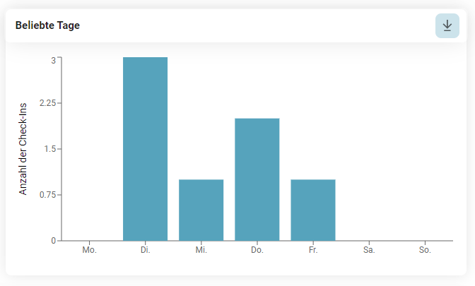 Das Diagramm aggregiert die Daten zu validierten Check-Ins, um die Tage anzuzeigen, an denen Mitarbeiter*innen häufiger ins Büro kommen.