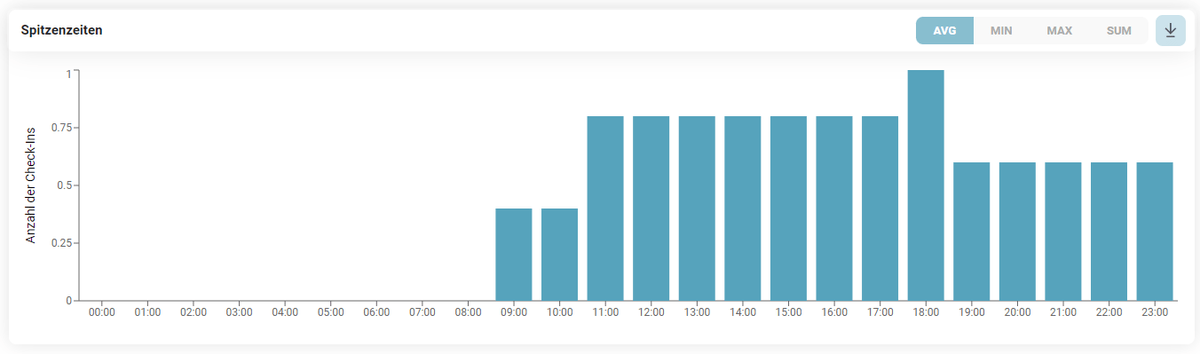 Abhängig von der Benutzerrolle ermöglicht die Anwendung die Extraktion weiterer Statistiken anhand der validierten Check-Ins, wie tägliche oder monatliche Belegung.
