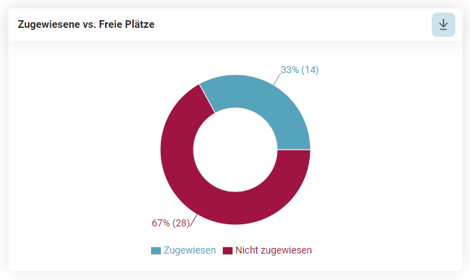 Das Diagramm zeigt das Verhältnis zwischen der Anzahl der zugewiesenen Plätze und den freien Plätzen im Gebäude. Diese Statistik ist relevant, falls zugewiesene Plätze von der Gebäudeverwaltung modelliert wurden.