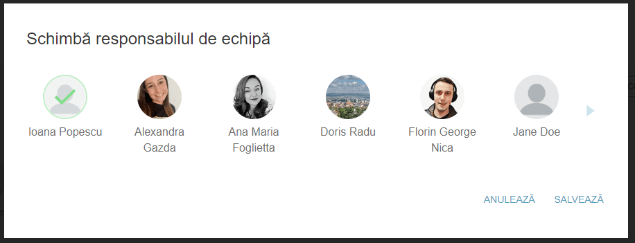 Pentru a iniția această acțiune, apasă pur și simplu butonul "Schimbă Owner" și selectează un alt membru activ din lista oferită.