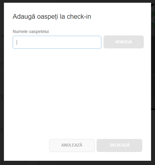 Mai mult, dacă utilizatorul gestionează check-in-ul membrilor unei echipe de oaspeți, acesta are posibilitatea de a adăuga invitați direct din această pagină, făcând clic pe butonul Adaugă membri. Va fi afișată o nouă fereastră, în care utilizatorul poate introduce numele oaspeților pe care dorește să-i adauge. După ce faceți clic pe butonul Salvează, membrii vor fi adăugați la începutul listei, dar și sub secțiunea de Gestionează membri de sub fila Comunitate.